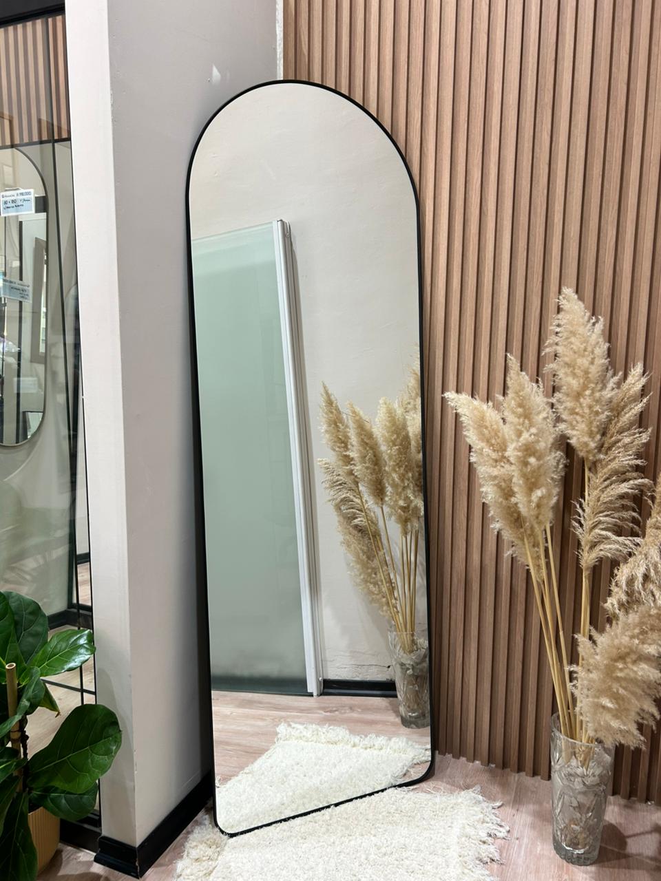 Espejo cuerpo entero modelo medio punto con marco PVC en varios colores, para apoyar o colgar, ideal para dormitorios o vestidores.